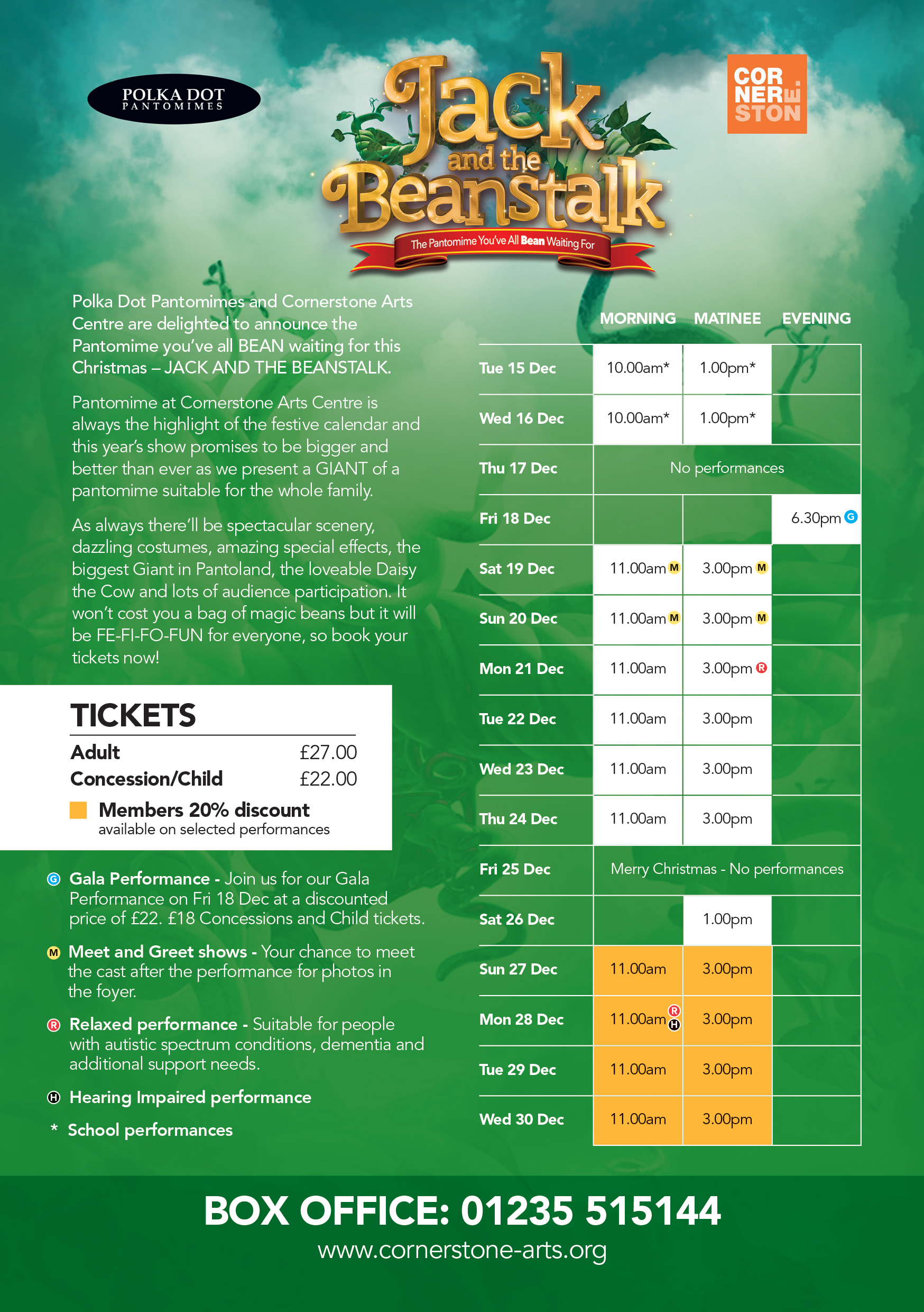 Polka Dot Pantomimes and Cornerstone Arts Centre are delighted to announce the Pantomime you’ve all BEAN waiting for this Christmas – JACK AND THE BEANSTALK.